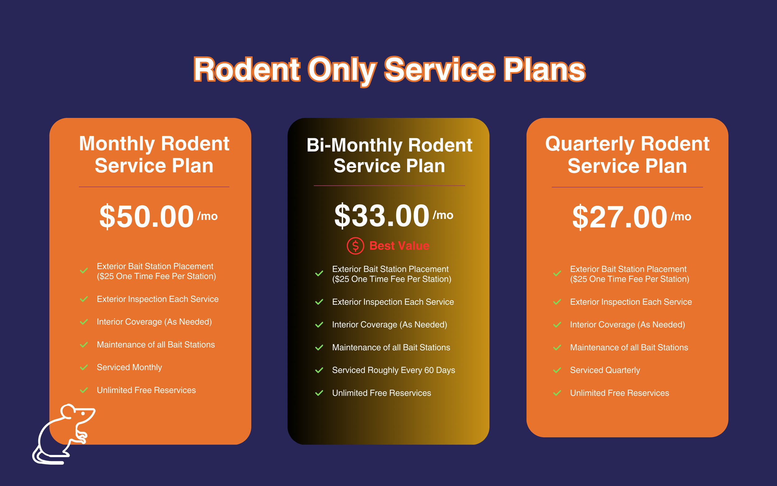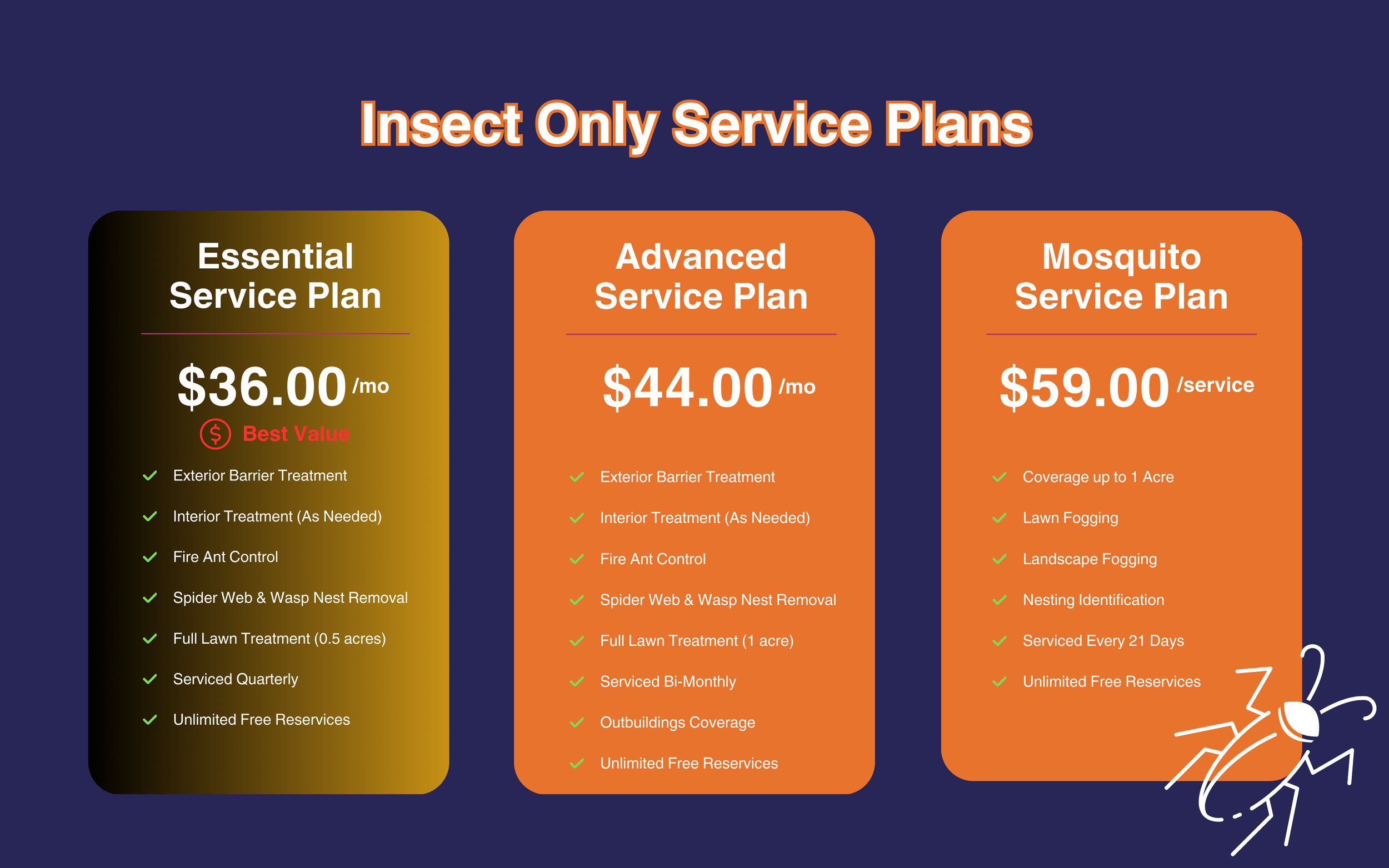 We offer professional pest control services for residential homes in Raleigh and the surrounding area. Let us help to create a customized pest control treatment plan based on your current pest issues, home condition, and budget. View the tables below to see additional details.